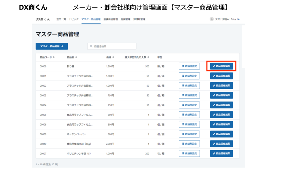 - 商品情報の編集: 各商品の右側の「商品情報編集」をクリックすると編集できます。